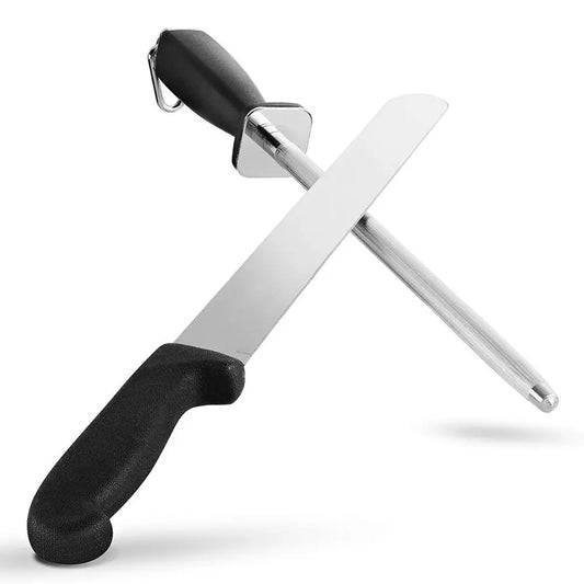 LMETJMA Premium 12 inch Knife Sharpener Rod Chef Diamond Sharpening Honing Rod Stick for all Kitchen Knifes KC0311
