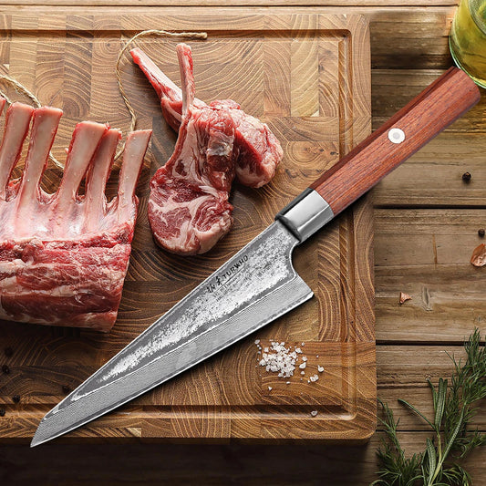 TURWHO 8.5" Slicing Knife Damascus Steel Carving Knives Sashimi Meat Cleaver Professional Kitchen Japanese Handmade Chef Knifes
